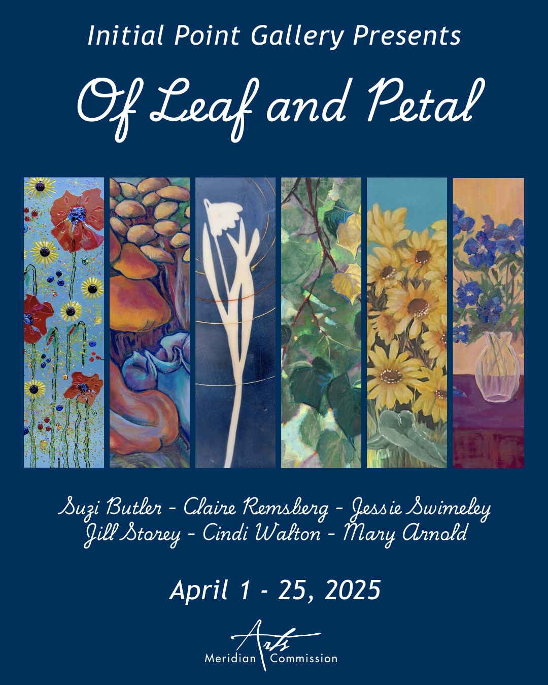 Initial Point Gallery is on the third floor of Meridian City Hall, directly across from the Mayor’s Office. The gallery, filled with natural light, features about 100 linear feet of wall space for the display of two-dimensional art, as well as four hand-crafted display cases for the exhibition of three-dimensional works. The gallery is an essential part of this building, as it brings art into the center of civic life in the City of Meridian. Displays are organized by the Meridian Arts Commission which issues a Call-to-Artists annually to jury displays. Opening receptions are typically held on the first Tuesday of the month from 4:30 – 7:00. Initial Point Gallery is free, fully accessible, and open to the public during City Hall business hours, Monday - Friday 8:00 am to 5:00 pm, excluding holidays.